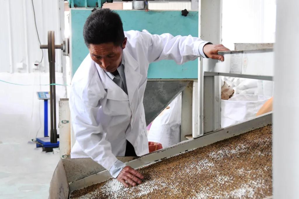 清晨的特布洛村,青山滴翠、空气清新,潺潺的溪水声、悦耳的鸟鸣声,与一座现代化苦荞加工车间发出的机器声交织,奏响新一天的奋进乐章。